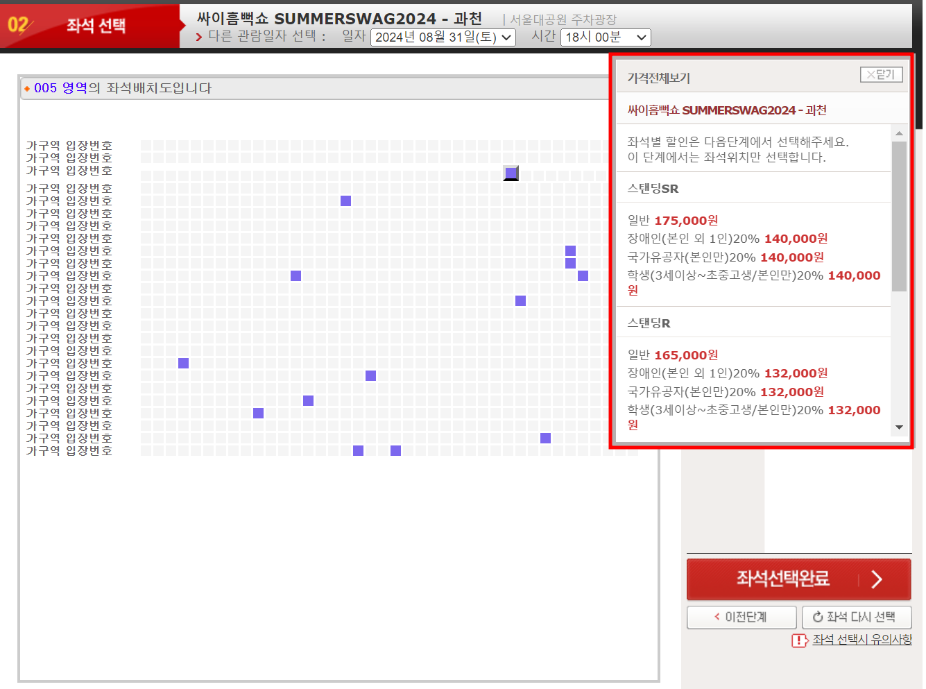 - 입장 시작 후 스탠딩 대기 구역에 도착한 경우
