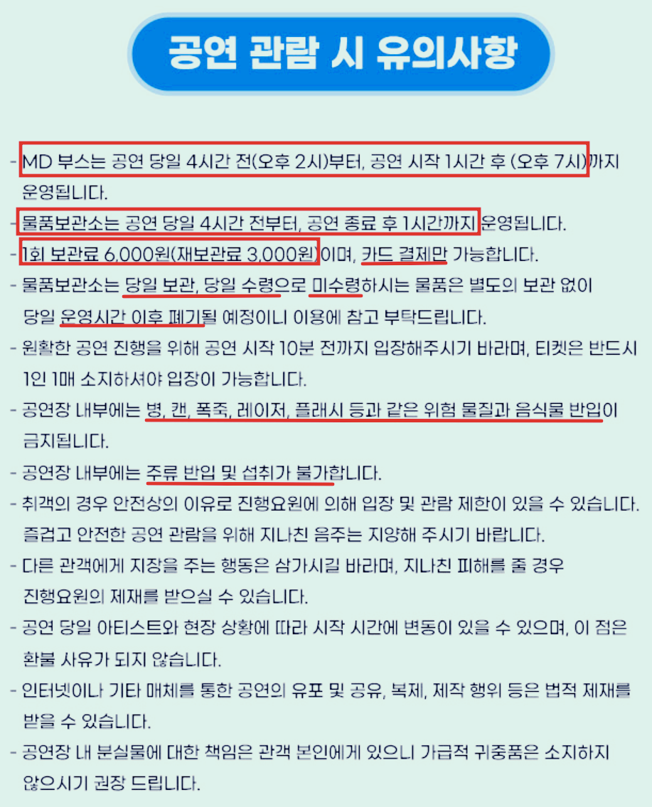 - 공연 2시간 전(오후 4시부터) 스탠딩 대기 구역에서