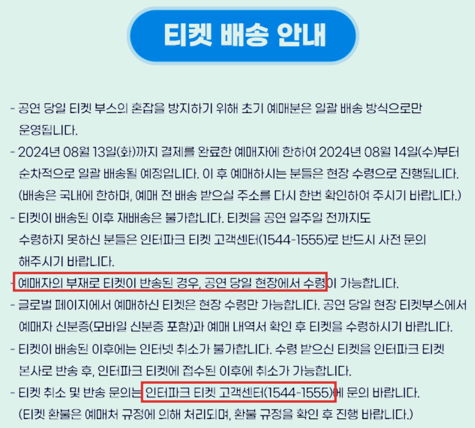 - 티켓 분실 및 미 소지시 입장 불가