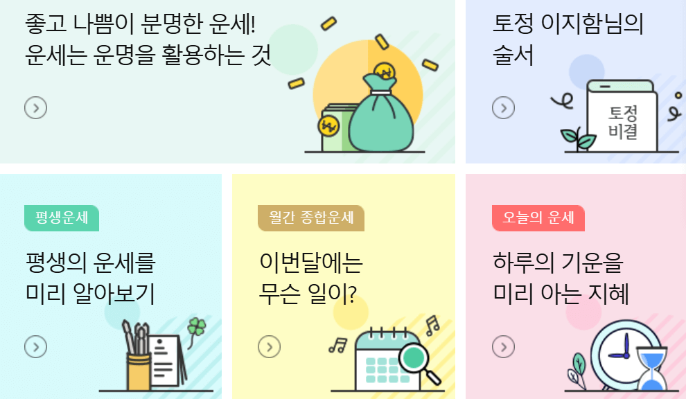 아래에서 여러가지 원하는 운세를 무료로 보세요~