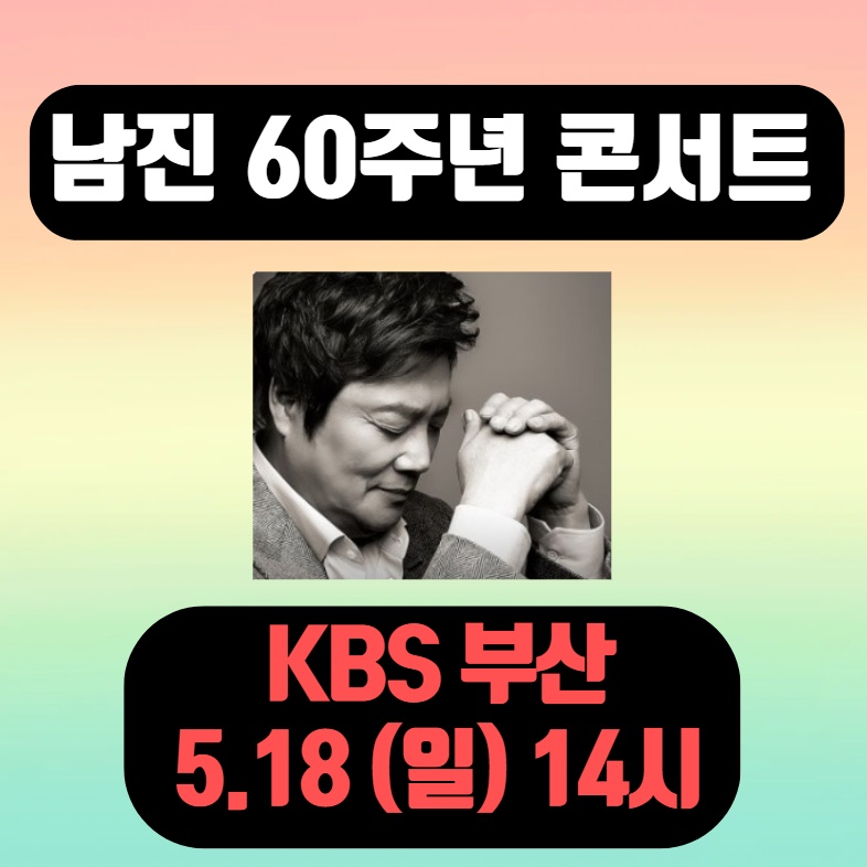 남진의 데뷔 60주년 기념 공연이 부산에서 열립니다. 마지막일지도 모를 남진의 콘서트 놓치지 말고 즐겨보세요. 예매는 아래 링크에서 가능합니다.