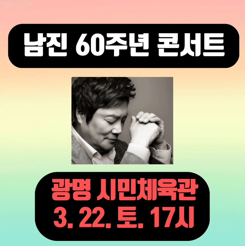 살아있는 전설 남진의 60주년 기념 전국 투어 콘서트를 광명에서 볼 수 있습니다. 마지막 공연이 될 수 있는 만큼 이번 공연 놓치지 말고 꼭 즐겨보세요. 티켓 예매는 아래에서 해주세요.