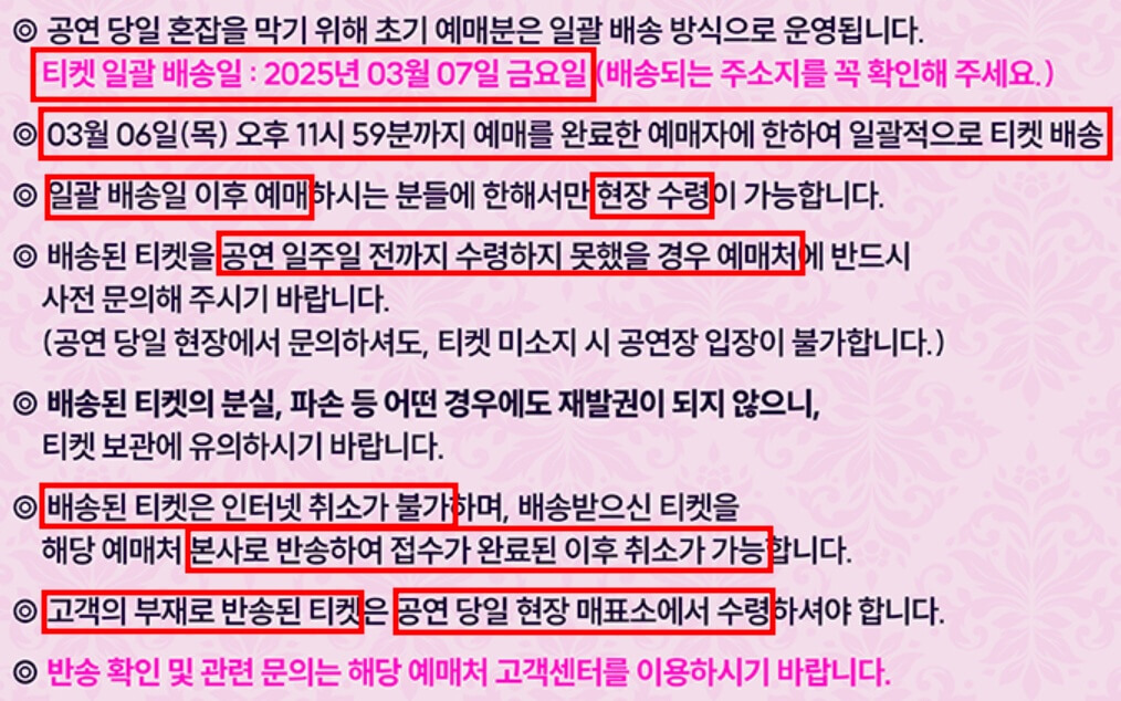 티켓 배송 및 취소방법