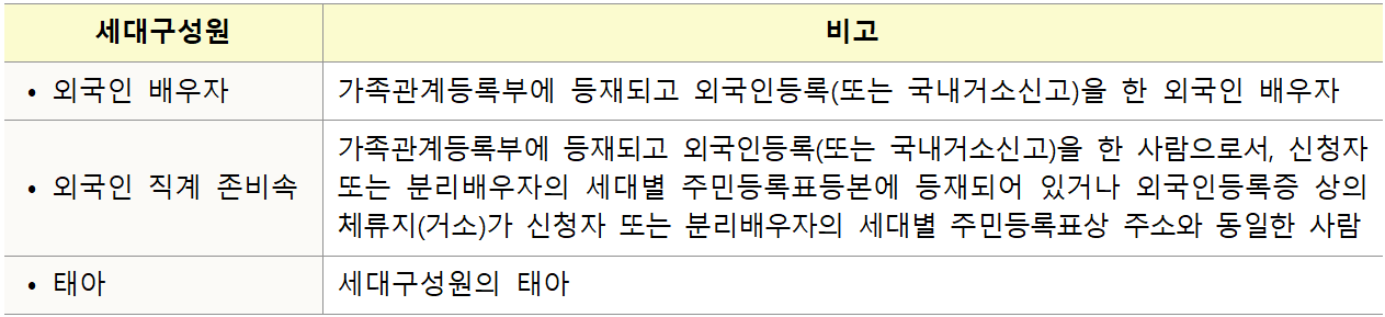 - 아래표에 해당하는 사람도 세대구성원에 포함됨