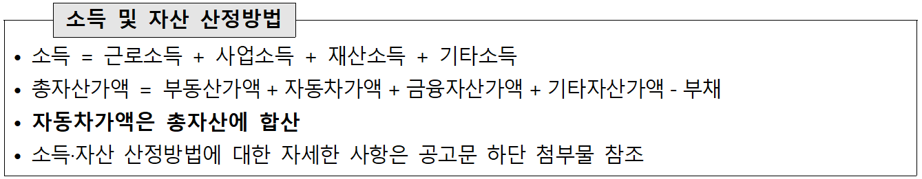 ※ 소득 및 자산 산정방법에 대한 자세한 내용은 아래 파일의 p.12~16의 내용을 참고하시기 바랍니다.